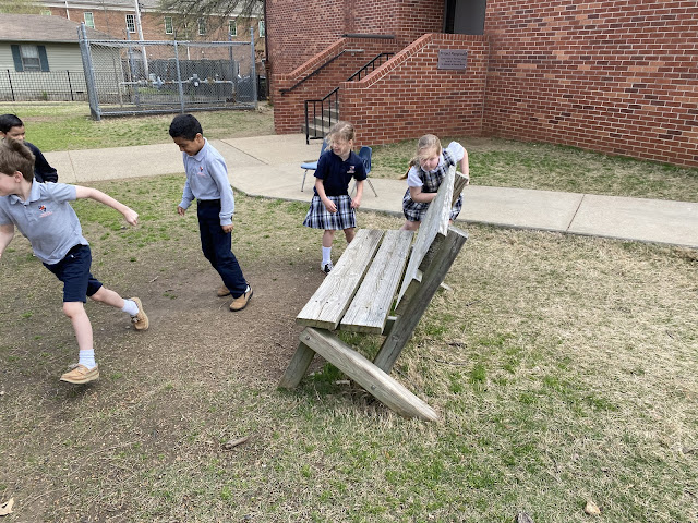 On Tuesday we had an egg hunt to review nouns, verbs, and adjectives. I hid eggs on the playground. Each egg had a few pieces of candy and a word. Each child was asked to find 2 eggs.